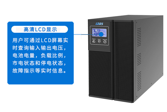 用戶(hù)可通過(guò)LCD屏幕實(shí)時(shí)查詢(xún)輸入輸出電壓,電池電量,負(fù)載比例,市電狀態(tài)和停電狀態(tài),故障指示等實(shí)時(shí)信息。
