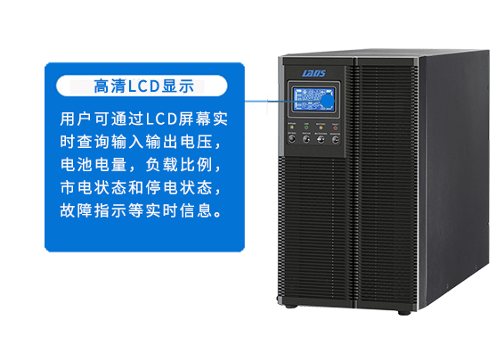 用戶(hù)可通過(guò)LCD屏幕實(shí)時(shí)查詢(xún)輸入輸出電壓,電池電量,負(fù)載比例,市電狀態(tài)和停電狀態(tài),故障指示等實(shí)時(shí)信息。
