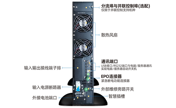 可安裝至普通的網絡機柜、服務器機柜等里面工作,節省空間。該機型占用空間高度為2U,內置蓄電池,停電后延時10分鐘左右。