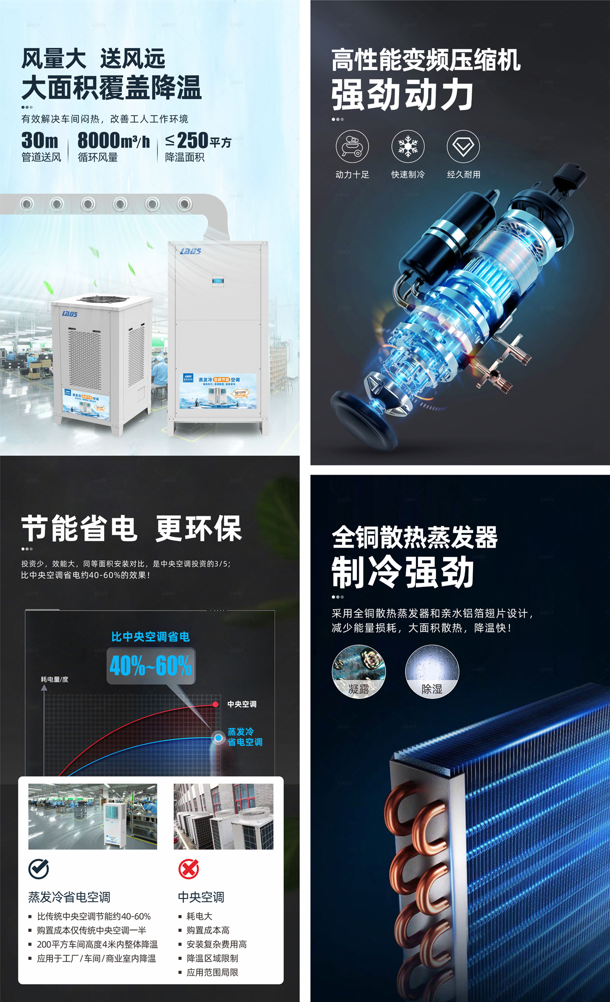 雷迪司管道送風(fēng)式蒸發(fā)冷變頻節(jié)能省電空調(diào)